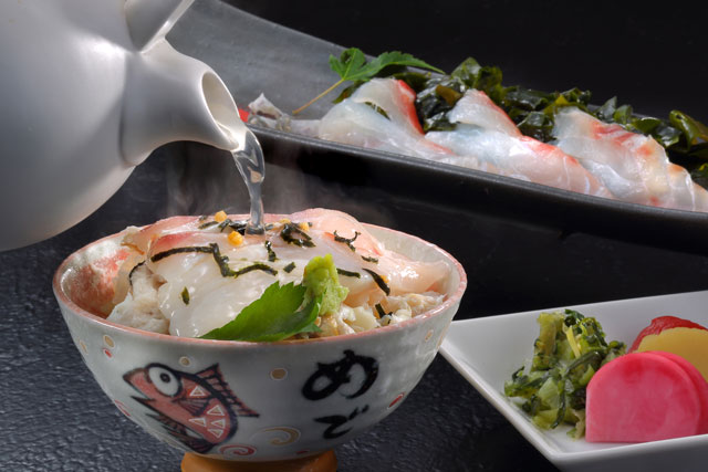 萬国屋こだわりの「鯛茶漬け」をご用意。
