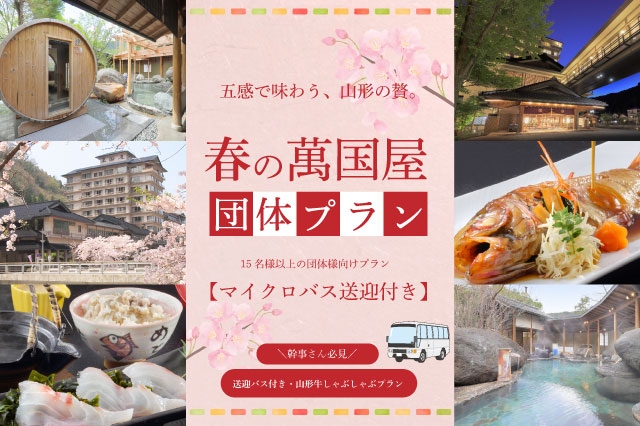 <15名様以上の団体向け>【山形牛しゃぶしゃぶ】マイクロバスの嬉しい送迎付き♪萬国屋のスタンダード